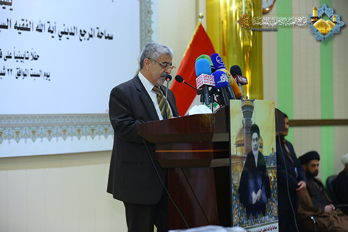 شارك وفد العتبة الكاظمية المقدسة الذي ترأسه أمينها العام أ.د (جمال الدباغ) وعدد من أعضاء مجلس إدارة العتبة ورؤساء الأقسام في الحفل التأبيني لمرور الذكرى السنوية الخامسة والأربعين لرحيل علم من أعلام مدينة الكاظمية والعالم الإسلامي المفكر المجاهد سماحة آية الله العظمى السيد(إسماعيل الصدر) قدس سره، الذي أقامه مكتب آية الله الفقيه سماحة السيد(حسين السيد إسماعيل الصدر) في قاعة صدر العراق يوم 22ـ شباط/2014م، بحضورالعديد من الشخصيات الدينية والعلمية والاجتماعية والسياسية وشيوخ ووجهاء العشائر لمدينة الكاظمية المقدسة، وألقيت خلاله العديد من الكلمات والقصائد الرثائية التي استذكر فيها دوره الجهادي والعمل على إصلاح النفس البشرية في حب الله وطاعته والتمسك بعقيدة أهل البيت(عليهم السلام) والسير على نهجهم الرسالي، ودعوته لإصلاح المجتمع واستنهاض روح المسؤولية والأمانة فيهم لأجل أن يرتقي بهذه قيم سامية لتكون مصدر عطاء للأجيال القادمة. وجاءت مشاركة العتبة الكاظمية المقدسة بهذا المناسبة لتعكس مدى اهتمامها بعلماء وعظماء وعباقرة ومجتهدي مدينة الكاظمية المقدسة وضرورة الاحتفاء بتراثهم العلمي والفقهي والعقائدي الذين زينوا بتراجمهم ومسيرتهم المشرقة صفحات التاريخ .
