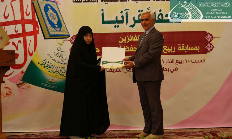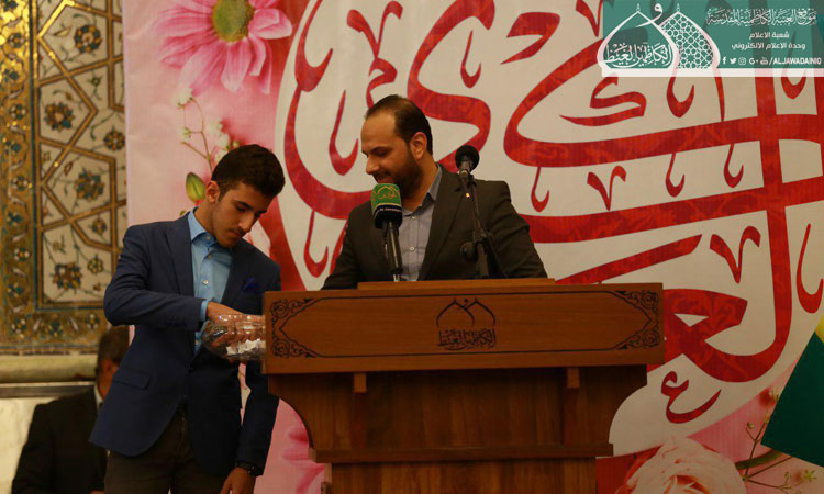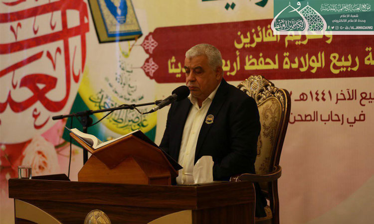 واحتراماً لمشاعر العوائل المفجوعة بأبنائها وترحماً على أروح الشهداء ارتأينا أن نقيم اليوم محفلاً قرآنياً بعيداً عن مظاهر الفرح والسرور فتغمد الله شهداءنا برحمته الواسعة وعافى جرحانا .. كما يُطيب لنا أن نوجّه كلمة طيبة لأبنائنا وبناتنا الفائزين بمسابقة ربيع الولادة لحفظ أربعين حديثاً للنبي الأعظم محمد "صلّى الله عليه وآله وسلّم" الذي قال: ( ياعلي مَن حفَظ من أُمتي أربَعين حديثاً يطلُبُ بذلك وَجه الله والدار الآخرة حشرهُ الله يوم القيامة مَعَ النَبيينَ والصديقينَ والشُهداءِ والصالحِينَ وَحَسُن أولئكَ رَفيقاً )، فهنيئاً لكم هذا الفوز وهذا التكريم وأذكّركم أن أهم من هذا الفوز هو تطبيق ما حفظتموه من تلك الأحاديث في حياتكم اليومية لتكون شعاركم وخارطة طريق لسلوككم وهذا هو الفوز الأهم ..)
