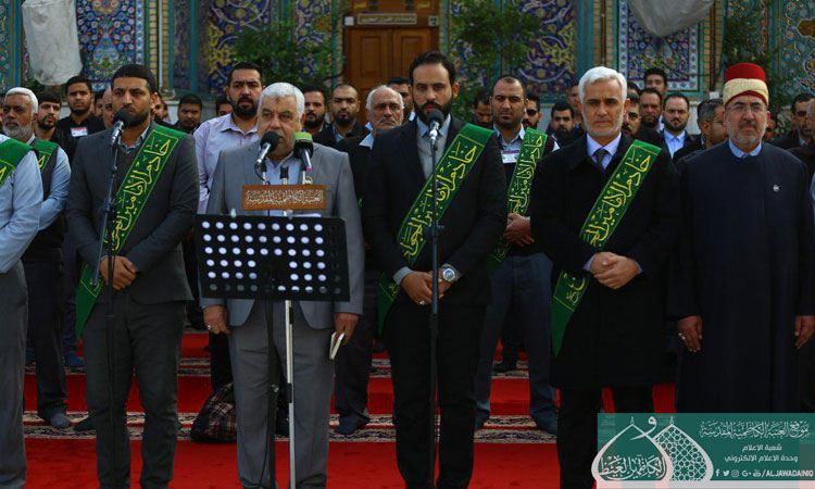 استهلت المراسم بتلاوة آيات من الذكر الحكيم، وقراءة زيارة الإمامين الجوادين "عليهما السلام" ثم قراءة إنشودة الفردوس المباركة، وقراءة دعاء الفرج، واختتمت بالدعاء لبلدنا العزيز العراق وشعبه الأبي بالأمن والأمان، ولشهدائنا بالرحمة والرضوان ولجرحانا بالشفاء العاجل.