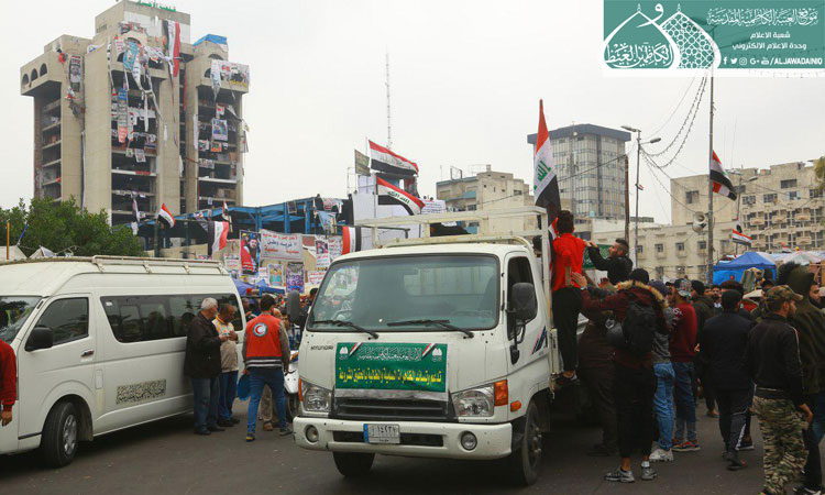 الأمانة العامة للعتبة الكاظمية المقدسة تواصل دعمها اللوجستي إلى ساحة التحرير