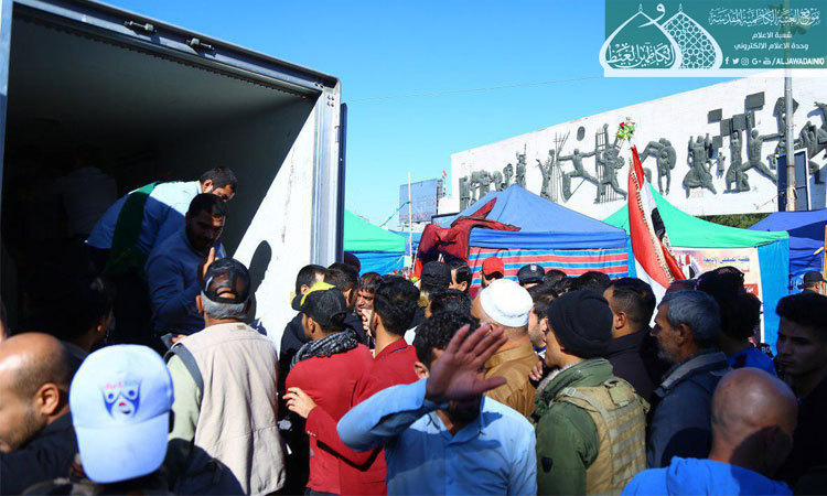 تواصل الأمانة العامة للعتبة الكاظمية المقدسة وبتوجيه من أمينها العام الأستاذ الدكتور حيدر حسن الشمّري بإرسال الدعم اللوجستي وحملات الإمدادات الإنسانية إلى ساحة التحرير في العاصمة بغداد، ودعم وإسناد حركة التظاهرات والمتظاهرين السلميّين وإدامة زخم الاحتجاجات والاعتصامات الشعبية المطالبة بتحقيق الإصلاحات.
