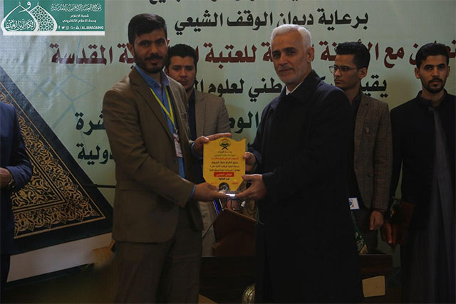 وفي ختام المسابقة قدّم مدير المركز الوطني لعلوم القرآن الكريم هدية تذكارية إلى الأمين العام للعتبة الكاظمية المقدسة، وتوزيع الدروع والشهادات التقديرية إلى أعضاء اللجنة التحكيمية واللجان التنظيمية والحفّاظ والقرّاء الفائزين الذين صدحت حناجرهم وجادت قرائحهم بتلاوات مباركة من الذكر المجيد والذين سيمثلون العراق في المحافل والمسابقات الدولية.