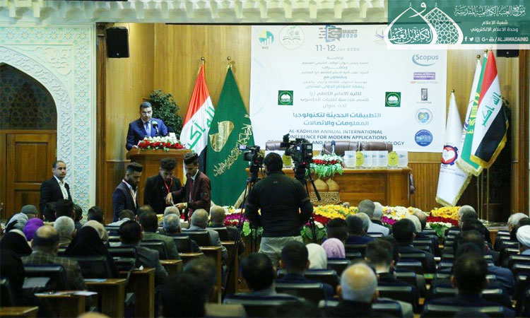 استضافت الأمانة العامة للعتبة الكاظمية المقدسة يوم السبت 11 كانون الثاني 2020 وعلى قاعة أسد الله الحمزة بن عبد المطلب "عليه السلام" في الصحن الكاظمي الشريف، حفل افتتاح المؤتمر العلمي الدولي الأول الذي أقامته كلية الإمام الكاظم "عليه السلام" وبالتعاون مع مؤسسة الذكوات للثقافة والفكر والفنون الموسوم: ( التطبيقات الحديثة لتكنلوجيا المعلومات والاتصالات) بحضور الأمين العام للعتبة الكاظمية المقدسة الأستاذ الدكتور حيدر حسن الشمّري، ونائبه المهندس سعد محمد حسن، وعميد كلية الإمام الكاظم "عليه السلام" الأستاذ المساعد الدكتور غني الخاقاني، ونخبة من رؤساء وعمداء الجامعات والكليات وأساتذتها وممثلي المؤسسات الأكاديمية المتخصصة في مجال التقنيات التكنلوجية وقطاع الاتصالات والشبكات وخدمات الأنظمة الرقمية.