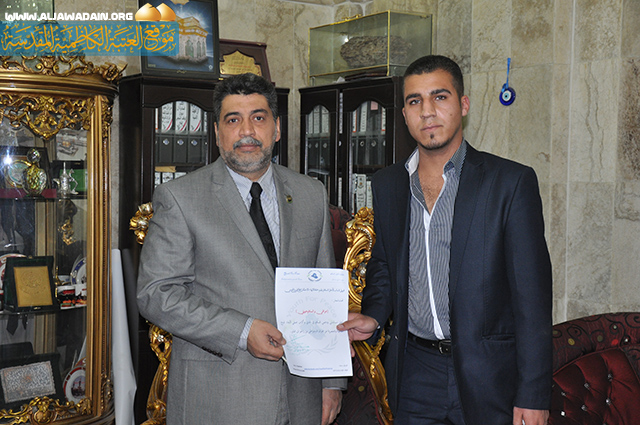 تشرف وفد من منظمة شباب لأجل السلام احدى مؤسسات المجتمع المدني, بزيارة الامامين الجوادين(ع) وبعد ادائهم مراسم الزيارة, توجه الوفد الى مقر إدارة العتبة حيث التقوا بالأمين العام للعتبة الكاظمية المقدسة الحاج فاضل الانباري, وجرى خلال اللقاء تبادل عبارات الود والترحيب وتحدث معهم مشيداً بدور هذه الثلة الطيبة من الشباب الرسالي المؤمن ودورهم الكبير التوجيهي والإرشادي في توعية هذه الشريحة الاجتماعية نحو اهداف وطنية تحمل في طياتها المعاني السامية لبناء عراق موحد وأكد قائلاً : (على الشباب ان يأخذوا دورهم الفاعل في بناء مستقبلهم المشرق وعدم التأثر والانجراف نحو الافكار والتيارات المنحرفة وأن يسعوا ويجدوا ويجتهدوا لنيل العلم و المعرفة بكل أبعادها، وإصلاح الذات، وتمييز الحق والباطل، ولتحقيق تطلعاتهم يجب الاقتداء بالأئمة المعصومين(ع) والسير على منهجهم القويم) .