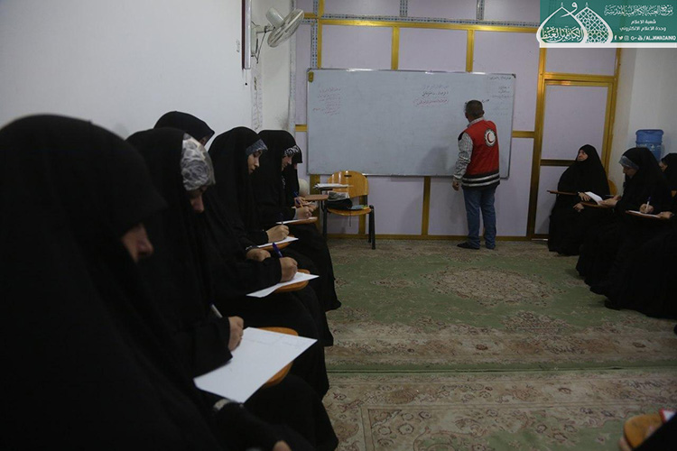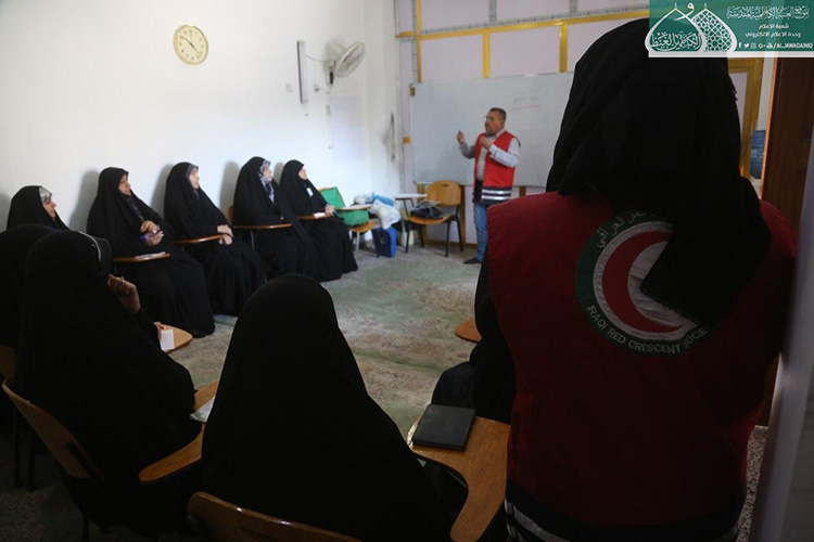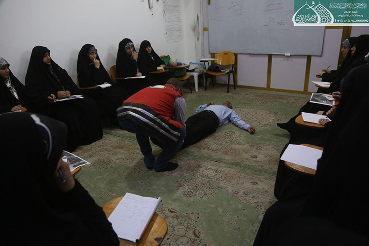 بغية الارتقاء بمستوى الثقافة الصحية والمجتمعية لدى الملاكات النسوية في العتبة الكاظمية المقدسة، نظّمت الأمانة العامة للعتبة الكاظمية المقدسة وبالتعاون مع جمعية الهلال الأحمر العراقي/ فرع بغداد ـ قاطع الكاظمية، دورة تدريبية في الإسعافات الأولية للخادمات العاملات في شعبة الشؤون النسوية، وتضمن البرنامج التدريبي للدورة دروساً نظرية وعملية حول كيفية اتخاذ التدابير الوقائية اللازمة، وتعامل المُسعف مع المُصاب في حالة تعرضه لحالات التسمم والاختناق وفقدان الوعي، والطرق الصحيحة لنقله وإخلائه دون أن تتسبب بمضاعفات وكيفية تقديم الدعم النفسي حيال المصاب.