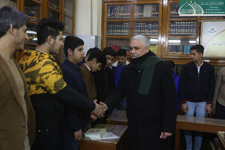 وتطرق في حديثه إلى نبذه مختصرة عن أدوار العتبة الكاظمية المقدسة في المجال الديني، والثقافي، والعلمي، والاجتماعي، كما تابع مع الطلبة مستوياتهم الدراسية والتعليمية وأشار إلى ضرورة وجود لدى كلّ واحد منكم غاية وهدف في تحقيق تطلعاته، فالأمل معقود عليكم، فأنتم إن شاء الله تعالى رجال المستقبل القادم الذي نتأمل به خيراً.