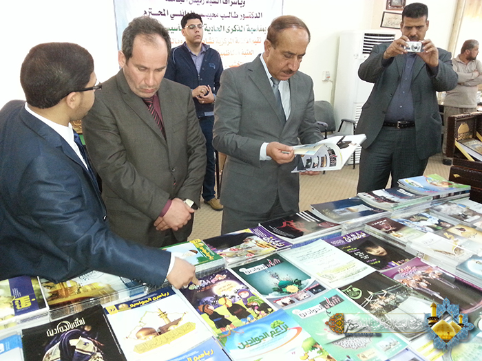أقامت جامعة واسط معرضاً للكتاب بالتعاون مع الأمانة العامة للعتبة الكاظمية المقدسة بمناسبة الذكرى الحادية عشر لتأسيس الجامعة، في قاعة المكتبة المركزية للفترة من من4ـ6 آذار 2014م، واحتوى المعرض على المؤلفات الدينية والنتاجات العلمية والثقافية والفكرية الصادرة من قسم الشؤون الفكرية والثقافية / شعبة الاصدارات الثقافية، وشعبة الدراسات والبحوث والتي تساهم في نشر تراث أئمة أهل البيت (عليهم السلام ) وبالخصوص الإمامين الهمامين موسى الكاظم ومحمد الجواد (عليهما السلام )، كما تميز بعرض الأعمال الفنية لشعبة النقش والزخرفة والتي كانت في غاية الرقي والإبداع معبرةً عن توظيف الفن الإسلامي العريق والتي نالت اهتمام الجمهور الزائر من طلبة الجامعة وأساتذتها والمثقفين والأكاديميين وقد أشادوا بهذه النتاجات مؤكدين إعجابهم بما شاهدوه من حسن التنظيم وتنوع العناوين وتدوين تلك الانطباعات في سجل التشريفات.