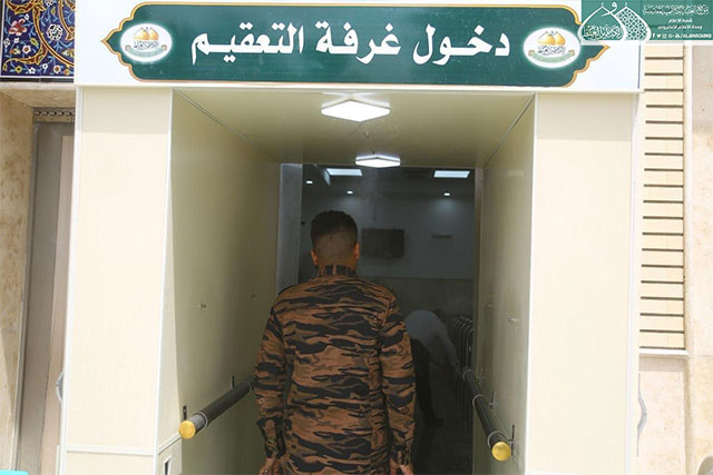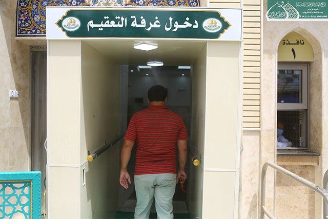 الملاكات الهندسية في العتبة الكاظمية المقدسة تُصنّع غرفة التعقيم الصحية الوقائية