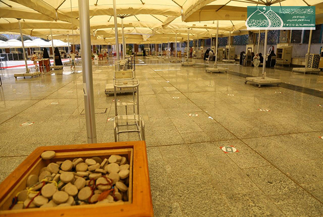 من أجل الحفاظ على صحة وسلامة الزائرين الكرام القاصدين حرم الإمامين الكاظمين الجوادين "عليهما السلام" ولدرء مخاطر الإصابة بوباء كورونا المستجد (COVID -19)، أطلقت العتبة الكاظمية المقدسة وبتوجيه من أمينها العام الأستاذ الدكتور حيدر حسن الشمّري مبادرة إنسانية جديدة وذلك بنشر مُلصقات تحدد أماكن الوقوف واتجاه القبلة لأداء الصلاة في رحاب الصحن الكاظمي الشريف لتحقيق التباعد الصحي الوقائي، والحفاظ على المسافات الصحية بين المصلين للحدّ من انتشار الإصابة بالفيروس، فضلاً عن تحديد اتجاه ومسار القبلة بدقة متناهية في العتبة المقدسة وفقاً للمعايير العلمية الدقيقة.