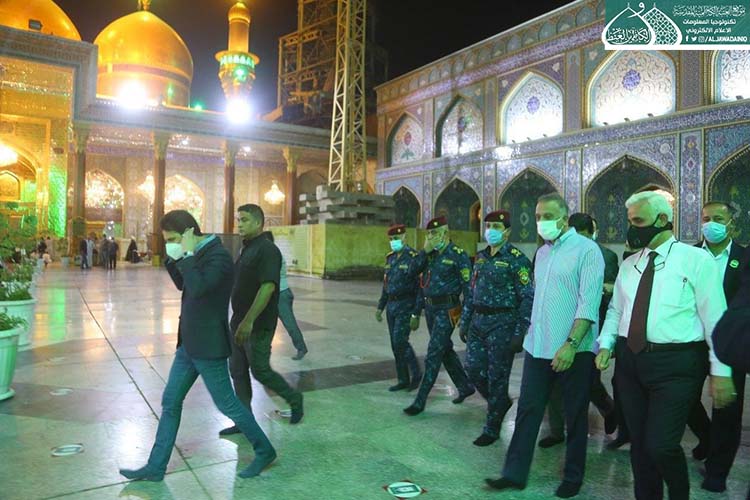 تشرّف بزيارة الإمامين الهمامين موسى بن جعفر الكاظم ومحمد بن علي الجواد "عليهما السلام" دولة رئيس مجلس الوزراء الأستاذ مصطفى الكاظمي، وكان في استقباله الأمين العام للعتبة الكاظمية المقدسة الأستاذ الدكتور حيدر حسن الشمّري، وأعضاء مجلس الإدارة الموقّر بكلّ حفاوة وترحيب وتقديم التهاني لمناسبة عيد الأضحى المبارك، وشهد اللقاء تبادل أطراف الحديث عن واقع العتبة المقدسة واستعراض الخطوات العملية للأمانة العامة للعتبة الكاظمية المقدسة على المستويين الخدمي والعمراني، فضلاً عن الإشارة إلى بعض الجوانب التي تسعى لها جاهدة في الارتقاء بمستوى الخدمة، كما وتم مناقشة الإجراءات الصحية الوقائية الواجب اتباعها حيث شددت العتبة الكاظمية المقدسة اجراءاتها الصحية الوقائية منذ المرحلة الاولى لتفشي فايروس كورونا واكدت على ضرورة تشديد تلك الاجراءات ووجوب التزام المواطنين بتعليمات وزارة الصحة حفاظاً على صحة وسلامة المواطن والمجتمع.