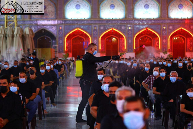 من الجدير بالذكر تواصل فرق السلامة العامة في العتبة الكاظمية المقدسة وبتوجيه من أمينها العام الأستاذ الدكتور حيدر حسن الشمّري بحملات تعفير موقع إقامة المجالس العزائية وجميع أرجاء الصحن الكاظمي الشريف، وذلك لخلق بيئة مناسبة وتأمين الحماية الصحية اللازمة للمشاركين في العزاء ولزائري الإمامين الكاظمين الجوادين "عليهما السلام".