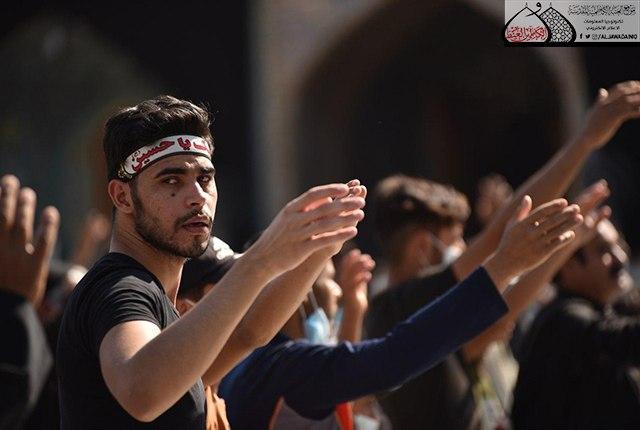 في يوم عاشوراء قدّمت السماء أنموذجا فريداً لمعنى التضحية في سبيل الحق، وآية كبرى من آيات العشق والذوبان في الذات الإلهية، عجزَ الزمان أن يأتي بنظير لها، إنه الحسين"عليه السلام" صانع حياة العزّ السرمدية، ومحيي فكرة النور التي أوقد سَناها جده الرسول الأعظم "صلى الله عليه وآله"، واليوم نستذكر شهادته "عليه السلام" الذي سطّر فيها أروع صور التضحية والفداء لإعلاء كلمة لا اله إلا الله محمد رسول الله بوجه الظلم والطغيان لإرساء القيم الإنسانية التي تهدف لحفظ كرامة الإنسان، إذ اقامت الأمانة العامة للعتبة الكاظمية المقدسة مراسم عزائية خاصة صباح العاشر من محرم الحرام لعام 1442 هـ بحضور جمع غفير من زائري الإمامين الكاظمين الجوادين "عليهما السلام" مع تشديد الالتزام بالإجراءات الصحية والوقائية انسجاماً مع توجيهات المرجعية الدينية العليا في الحفاظ على سلامة الزائرين والمعزين.