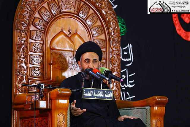 إذ شهدت رحاب الصحن الكاظمي الشريف ومنذ اليوم الأول لشهر الأحزان عقد المجلس العزائي العاشورائي السنوي الذي يُقام بالتعاون بين العتبة الكاظمية المقدسة وممثلية المرجعية الدينية العُليا في مدينة الكاظمية المقدسة، وذلك من خلال منهاج حافل استضيف فيه نُخبة من فضلاء الحوزة العلمية الشريفة وكبار أساتذتها رفدوا الحضور الأكارم من نمير علومهم بسلسلة من البحوث والمحاضرات الدينية والتوجيهات القيّمة ليستمر إلى ليلة الثاني عشر من شهر محرم الحرام ليستكمل منهاج المجلس المبارك أستاذ الحوزة العلمية الشريفة سماحة السيد طعمة الجابري ومشاركته ببحث قيّم عنوانه: ( الإمام الحسين الشهيد الفاتح )، مستشهداً بقول سيد الشهداء حين كتب "عليه السلام" إلى بني هاشم: ( بسم الله الرحمن الرحيم، من الحسين بن علي إلى بني هاشم، أما بعد، فإنه من لحق بي منكم استشهد, ومن تخلف عني لم يبلغ الفتح والسلام )، استعرض ما أجادت به ذاكرته عن مقام الشهيد وعظمة منزلة الشهادة وما قدمته واقعة الطف من نماذج فذّة، وأشار إلى قطوف من نهضة الإمام الحسين "عليه السلام" وتضحياته الذي استطاع أن يكشف فيها حبائل الطغيان واقتلاع شجرة الضلال الأموي، وترسيخ دعائم الحق والهدى حين حقق النصر بدمه الطاهر والشهادة بترسيخ قواعد الإيمان وإعاد للرسالة أصالتها، وفتح الطريق أمامها لتأخذ طريقها إلى القلوب والنفوس نقية خالصة.