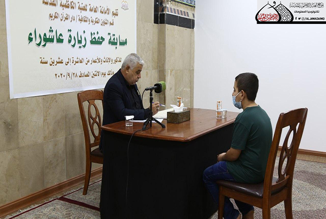 استناداً إلى توجيهات الأمانة العامة للعتبة الكاظمية المقدسة متمثلة بأمينها العام الاستاذ الدكتور حيدر حسن الشمّري، وتشرّفاً بحديث إمامنا جعفر الصادق "عليه السلام" في فضل زيارة عاشوراء وما لها من أهمية حين قال: ( يا صفوان كلما كانت لك حاجة عند الله توجه إليه تبارك وتعالى بقراءة هذه الزيارة والدعاء بعدها في أي مكان كنت واطلب حاجتك فإن الله لا يخلف وعده)، وترسيخاً للمفاهيم التربوية والأخلاقية في نفوس الناشئة والأجيال الفتيّة ورعايتها للنشاطات الثقافية، أجرت الأمانة العامة للعتبة الكاظمية المقدسة/ قسم الشؤون الفكرية والثقافية/ دار القرآن الكريم اختبارات للمشاركين في مسابقة حفظ زيارة عاشوراء المباركة في مقر مدرسة الجوادين "عليهما السلام" في رحاب الصحن الكاظمي الشريف حيث تم اختبار (220) مشاركاً من الذكور والإناث للأعمار من (١٠ـ ٢٠) سنة، مع تأكيد الالتزام بالإجراءات والتعليمات الصحية والوقائية، وخصصت الأمانة العامة للعتبة الكاظمية المقدسة للفائزين جوائز وهدايا نقدية من بركات الإمامين الكاظمين "عليهما السلام" تشجيعاً لهم وتثميناً لمثابرتهم في الحفظ.