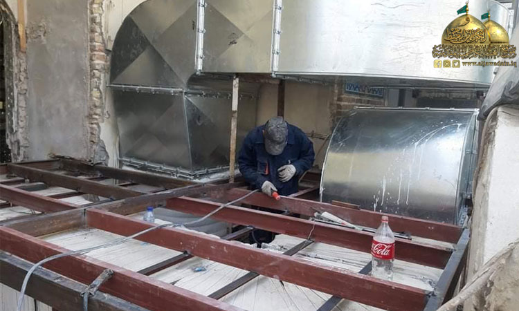 إن من أهم الأعمال تبديلُ منظومةِ التبريد المركزي القديمة بأخرى ذاتِ مواصفاتٍ وجودةٍ عالية وسعةٍ أكبر ومن مناشئ عالمية رصينة، تتلائمُ مع الظروف الحالية ومناخ العراق، ولها وظيفة تبديل الهواء وتدويره بالإضافة إلى زيادة الطاقة الانتاجية للتبريد بأضعاف ما كانت عليه لتكون (650) طنا بعد أن كانت (150) فقط والذي رافقها عمل فتحات ملائمة للمنظومة الجديدة في سقوف الأروقة وشبابيك الحرم لإيصال الهواء المكيف واستبداله الأمر الذي يحقق خدمة متميزة للزائرين الكرام.