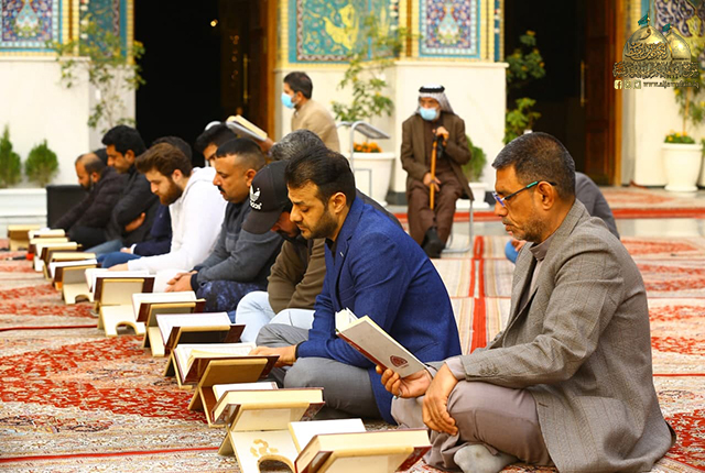 من جوار الإمامين الكاظمين الجوادين "عليهما السلام" وضمن المنهاج التأبيني والعزائي لإحياء مناسبة ذكرى وفاة الحرة الأبية والطاهرة الزكية أم البنين زوج أمير المؤمنين علي بن أبي طالب "عليهما السلام"، أقامت الأمانة العامة للعتبة الكاظمية المقدسة/ قسم الشؤون الفكرية والثقافية، مركز القرآن الكريم جلسات قرآنية للرجال وجلسات أخرى للنساء بالتعاون مع شعبة الشؤون النسوية/ وحدة الإرشاد الديني، في رحاب الصحن الكاظمي الشريف، أُهديَ ثوابها إلى مولاتنا أم البدور السواطع أم البنين "عليها السلام"، بحضور الجموع الغفيرة من زائري وزائرات الإمامين الكاظمين الجوادين "عليهما السلام" للاستماع للتلاوات المباركة والتعريف بفضائل السور القرآنية لينهلوا من فيوضات الرحمة الإلهية والتزود من بركات الذكر الحكيم بزاد التقوى والمغفرة ونيل الأجر والثواب.