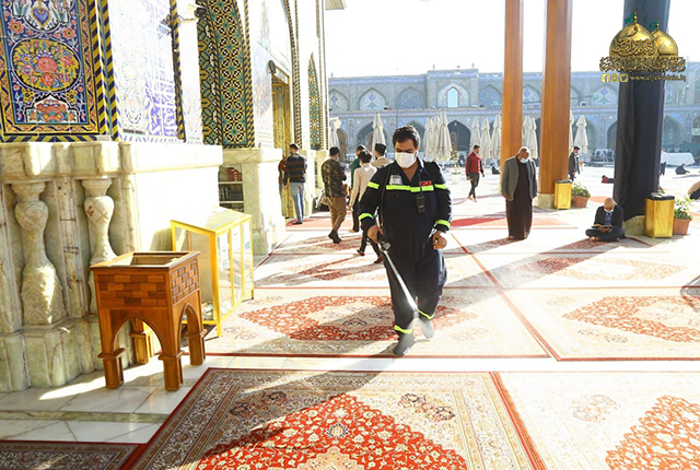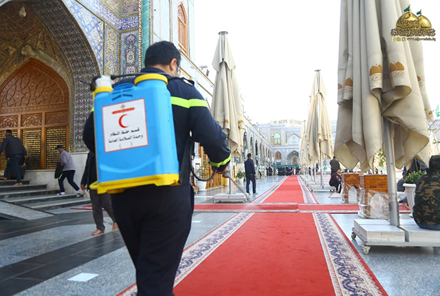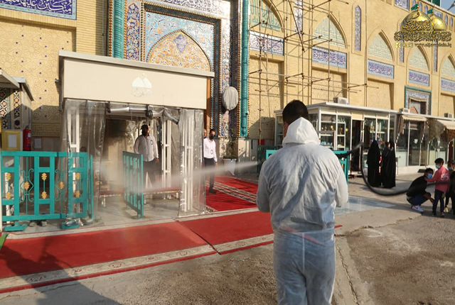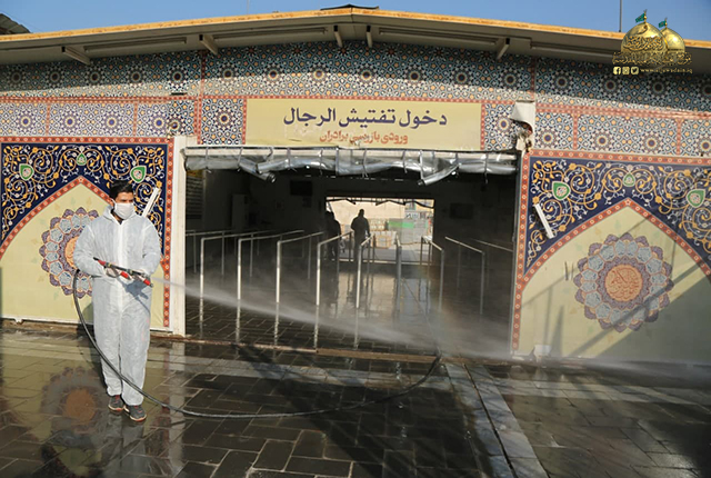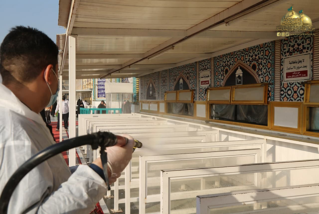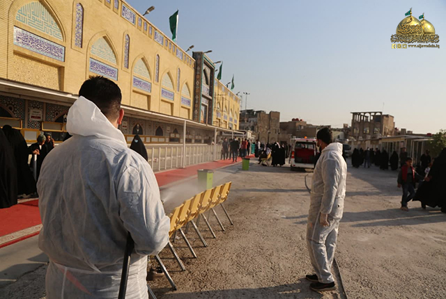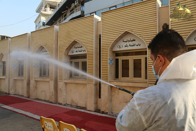 استناداً إلى توجيهات الأمين العام للعتبة الكاظمية المقدسة الأستاذ الدكتور حيدر حسن الشمّري في اتخاذ التدابير والإجراءات الوقائية لتفادي مخاطر انتشار فيروس كورونا المستجد، نفذّ فريق وحدة السلامة العامة في قسم حفظ النظام حملة تعفير واسعة شهدتها مفاصل الصحن الكاظمي الشريف، لتأمين الحماية اللازمة والحفاظ على صحة وسلامة وزائري الإمامين الكاظمين الجوادين "عليهما السلام".