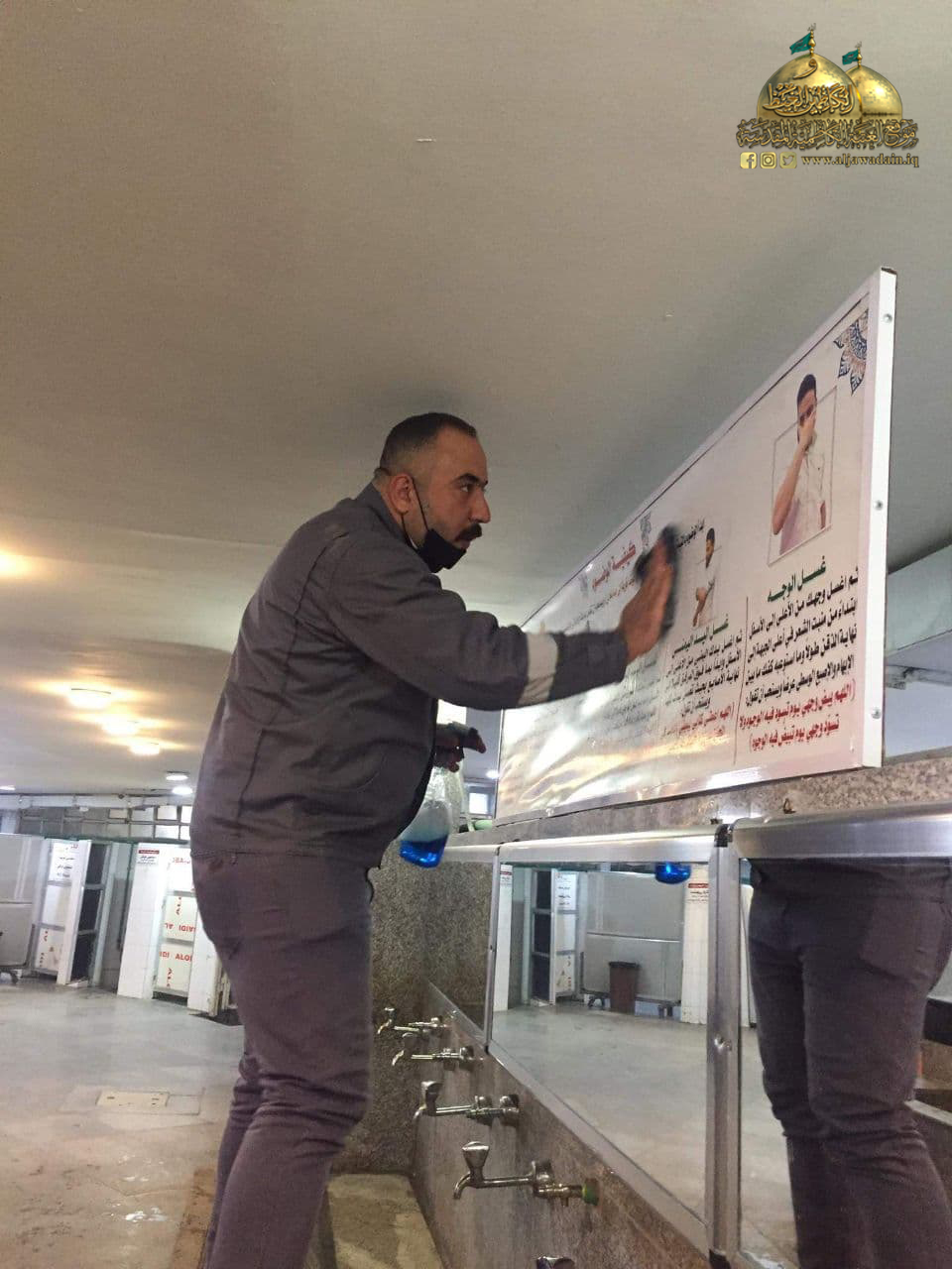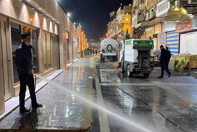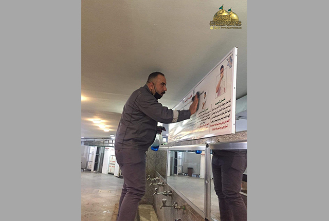 كما أولت شعبة النظافة عنايةً صحية كبيرة من خلال الالتزام بالتوصيات الصادرة من قبل إدارة العتبة المقدسة، والتي تخص ارتداء القفازات والكمّامات أثناء العمل، واستخدام المنظفات والمعقّمات والمطهّرات لإدامة المكان الطاهر للوقاية والحفاظ على صحة وسلامة الزائرين الكرام، ودرء مخاطر الإصابة بوباء كورونا المستجد.