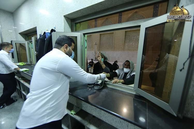 استناداً إلى توجيهات الأمانة العامة للعتبة الكاظمية المقدسة الخاصة بالزيارة المباركة لشهادة سمي الكليم الإمام موسى بن جعفر الكاظم "عليه السلام"، قدّم قسم خدمة الزائرين في العتبة الكاظمية المقدسة جهوداً استثنائية خلال هذا الموسم حيث استنفر جميع إمكانياته لتوفير أفضل الخدمات وسبل الراحة للزائرين الكرام، وبغية التعرف على تلك النشاطات تحدث لموقع العتبة المقدسة رئيس القسم خادم الإمامين الجوادين إحسان جواد كاظم قائلاً: تم تكثيف الجهود تماشياً مع الوضع العام لجائحة كورونا والحاجة لاستعدادات من نوعٍ خاص، إذ عملت وحدة الأمانات والمفقودات والعربات وكراسي ذوي الاحتياجات الخاصة في تهيئة المواقع واستحداث نقاط جديدة تعمل على مدار الساعة في الشوارع المحيطة بالصحن الشريف المخصصة لتسلّم حقائب الزائرين وتسليم ذوي الاحتياجات الخاصة والمرضى وكبار السن الكراسي المتحركة التي تساعدهم على أداء الزيارة، فضلاً عن تهيئة محطات لتسلّم أجهزة الهاتف النقال المتواجدة في جميع مداخل العتبة المقدسة تحسباً لتخفيف الزخم البشري وتحقيق التباعد الاجتماعي قدر المستطاع.