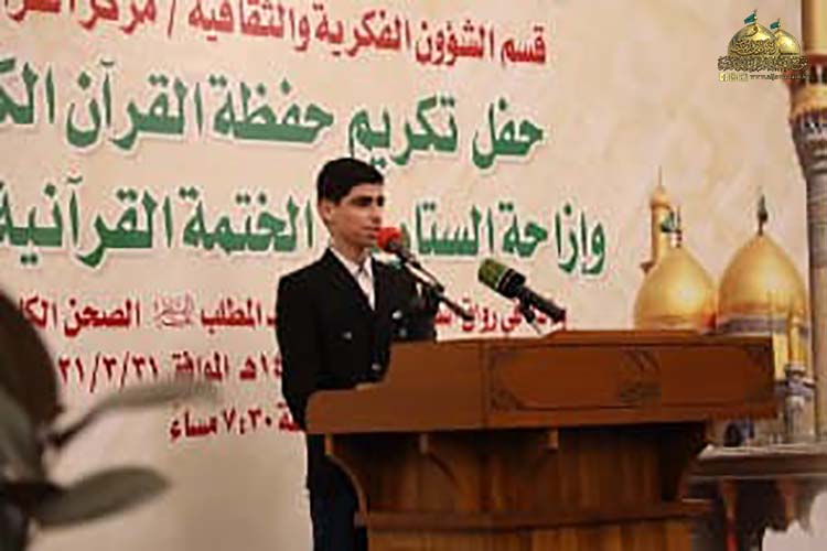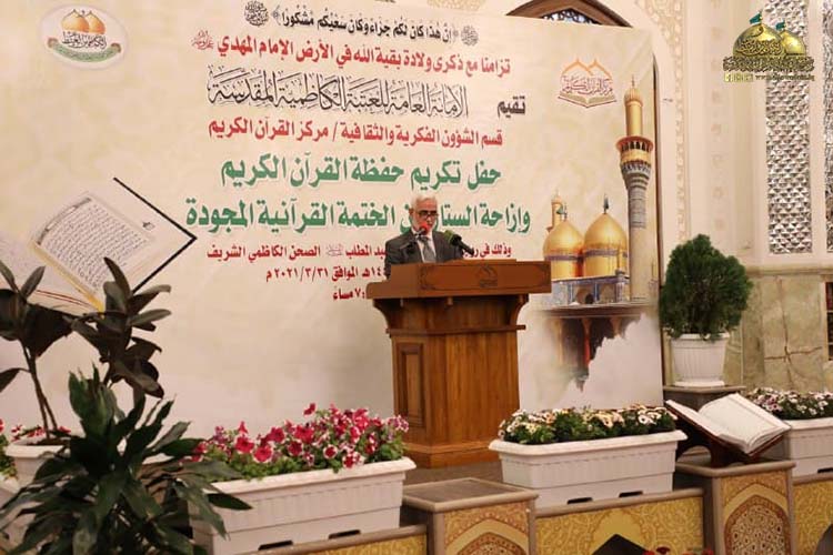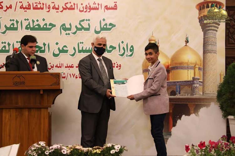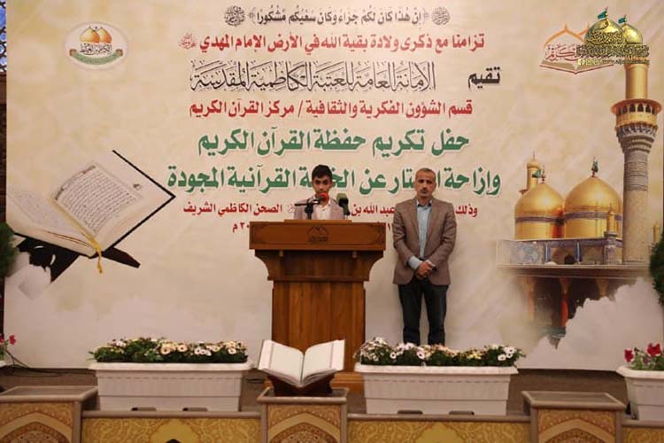 تزامناً مع ذكرى ولادة شريك القرآن الإمام الثاني عشر من الأئمة الهداة الحجة بن الحسن المهدي "عجل الله فرجه الشريف" أقامت الأمانة العامة للعتبة الكاظمية المقدسة/ مركز القرآن الكريم حفل تكريم كوكبة جديدة من طلبة دوراتها ممن حفظوا أجزاءً من القرآن الكريم، شهده رواق السيد عبد الله بن عبد المطلب "عليه السلام" في رحاب الصحن الكاظمي الشريف بحضور الأمين العام للعتبة الكاظمية المقدسة الأستاذ الدكتور حيدر حسن الشمّري وأعضاء مجلس الإدارة الموقّر، وعدد من الأساتذة والمهتمين بالشأن القرآني، وطلبة الدورات القرآنية وذويهم مع الالتزام بالشروط الصحية والوقائية وتحقيق التباعد البدني.