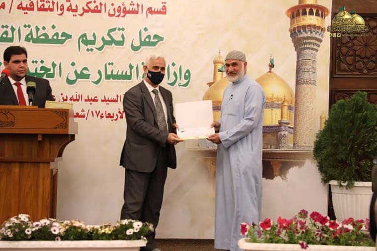 تكريم كوكبة من طلبة دورات حفظ القرآن الكريم وإزاحة الستار عن التلاوة المجودة للدكتور العامري