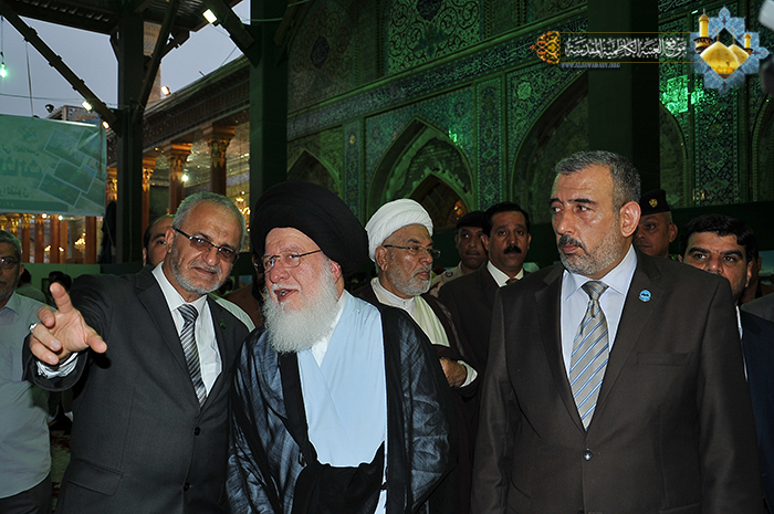 تيمناً بولادة نور الإمامة التاسع الإمام محمد الجواد"عليه السلام" وتزامناً مع فعاليات المؤتمر العلمي السنوي الدولي الخامس الذي سيعقد تحت شعار: (من فكر أئمة البقيع"عليهم السلام" ننهل وبنهجهم نعمل) وضمن اهتمام الأمانة العامة للعتبة الكاظمية المقدسة بتطوير مشروعها الثقافي الإسلامي وتعزيز وتشجيع روح الإبداع الفني، افتتح سماحة آية الله الفقيه السيد "حسين السيد إسماعيل الصدر" برفقة الأمين العام للعتبة الكاظمية المقدسة أ.د "جمال الدباغ" معرض الجوادين الثالث للخط العربي والصور الفوتوغرافية والفنون"عليهما السلام" للفنون المقام في مسقف الصحن الكاظمي الشريف عصر يوم الاربعاء 7 رجب الأصب 1435هـ الموافق 7 أيار 2014م والذي يستمر على مدى خمسة أيام، بحضور أعضاء مجلس الإدارة وعدد من المهتمين بالشأن الثقافي والفني، وشملت أروقته عدة عروض فنية تضمنت جناح للوحات الخط العربي والزخرفة الإسلامية تجسدت فيها جمال وروعة هذا الفن العريق وجناح للصور الفوتوغرافية حيث عبرت لوحاته البانورامية التفاعلية عما يمتلكه هذا الفن من ذوق وروحية عالية وواقعية مؤثرة يعكس فن العمارة الإسلامية والوجه الحضاري لمعالم الصحن الكاظمي الشريف، وجناح للنقش والزخرفة وفن الحفر على المرمر الذي عكس فناً راقياً فأصبح ريع إبداعه صفة تميزت وأنفردت بها العتبة الكاظمية المقدسة.