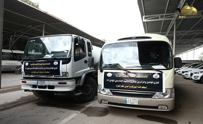 في سياق متصل شارك وفد الأمانة العامة للعتبة الكاظمية المقدسة الذي ترأسه نائب الأمين العام المهندس سعد محمد حسن وعدد من أعضاء مجلس الإدارة جموع الزائرين الكرام ومواكب مدينة الكاظمية المقدسة، حيث تم نقل المشاركين من مواكب أهالي الكاظمية الكرام بباصات العتبة المقدسة ذهاباً وإياباً مجاناً للمشاركة بمجلس العزاء المركزي الذي شهدته العتبة العسكرية المقدسة مستذكرين خلال تلك المراسم العزائية شذرات من السيرة المباركة للإمام الهادي "عليه السلام"، ومآثره الإنسانية العظيمة وامتداده لشخوص آبائه وأجداده الطاهرين "عليهم السلام" الذين ملأوا الدنيا بفضائلهم وسجاياهم ومناقبهم العظيمة.