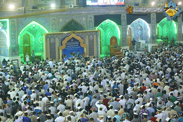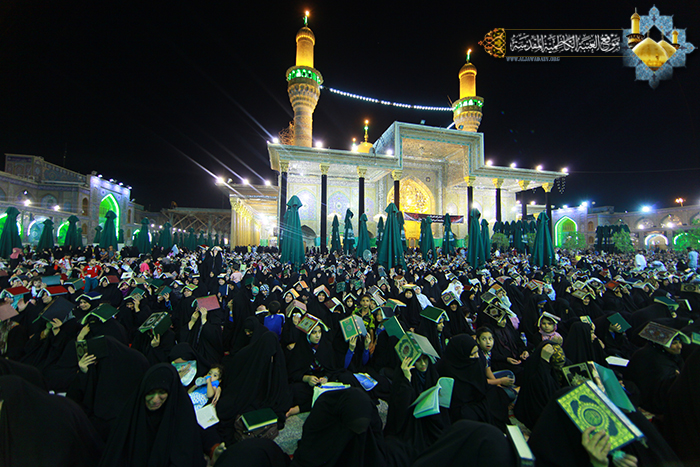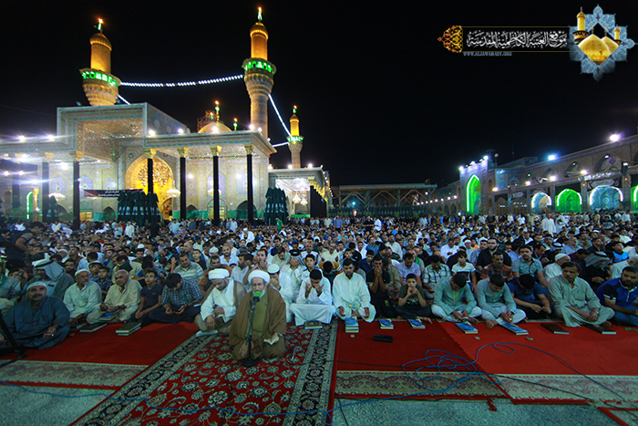 وسط أجواء روحانية تفيض بالإيمان ورجاء القبول شهد الصحن الكاظمي الشريف في الليالي العشر الأخيرة من شهر رمضان المبارك ولا سيما ليالي القدر المباركة التي شرع الله عز وجل فيها أبواب رحمته أمام عباده وهم يتقربون ويتضرعون إليه طلباً للرحمة والمغفرة والعتق من النار، وتحت ظل بركات الإمامين موسى بن جعفر ومحمد الجواد "عليهما السلام" احتشدت الجموع المؤمنة في الليلة الثالثة والعشرين من شهر رمضان المبارك بحضور سماحة الشيخ "حبيب الكاظمي"، والشيخ "عبد الله الدجيلي" ، لتقيم الشعائر والمراسم العبادية الخاصة بليلة القدر العظيمة والتي تم إحياءها بالذكر والاستغفار وتلاوة القرآن الكريم والصلوات مبتهلين إلى الله العلي القدير بالدعاء لصاحب العصر والزمان وتعجيل الفرج وأن يشملهم بوافر رحمته، ويحيي القلوب بالمحبة والأخوة والوئام وأن يحل السلام والأمان على المسلمين في مشارق الأرض ومغاربها .