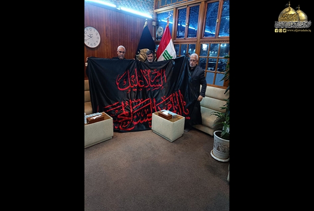 الأمانة العامة للعتبة الكاظمية المقدسة تتسلّم الراية المباركة للإمام الحسن المجتبى "عليه السلام"