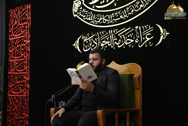 من طف كربلاء نستلهم الخلود والإباء، ونجدد الحزن والعزاء لإحياء ذكرى شهادة زين المتهجدين ودرة الصالحين الإمام علي بن الحسين "عليه السلام" في الخامس والعشرين من شهر محرم الحرام، وبرعاية مباركة من الأمين العام للعتبة الكاظمية المقدسة خادم الإمامين الكاظمين الجوادين الدكتور حيدر حسن الشمّري، أقام موكب خدّام العتبة الكاظمية المقدسة مجلسه العزائي السنوي بهذه المناسبة الأليمة في رواق سيدنا عبد الله بن عبد المطلب "عليه السلام"، استضيف فيه كل من: فضيلة الشيخ عماد الكاظمي، وفضيلة الشيخ منير الكاظمي ليتحفا الحضور بمحاضراتهم الدينية القيمة حيث استعرضا فيها قَبَسات من السيرة المباركة للإمام الرابع من الأئمة الهداة "عليهم السلام" إذ بيّنا في بحثهما الصفات التي تجلّت في شخصية الإمام السجاد "عليه السلام" وهي: " العِلم والعدالة والشجاعة"، وأشار إلى مضامين الصحيفة السجادية والأدعية الواردة فيها التي تفضي بالإنسان للوصول إلى مقاصد الإمام "عليه السلام" لنيل رضا الله تعالى والتي تعمل على تربية المؤمن من خلال أدب الدعاء والابتهال إلى الله عز وجل.