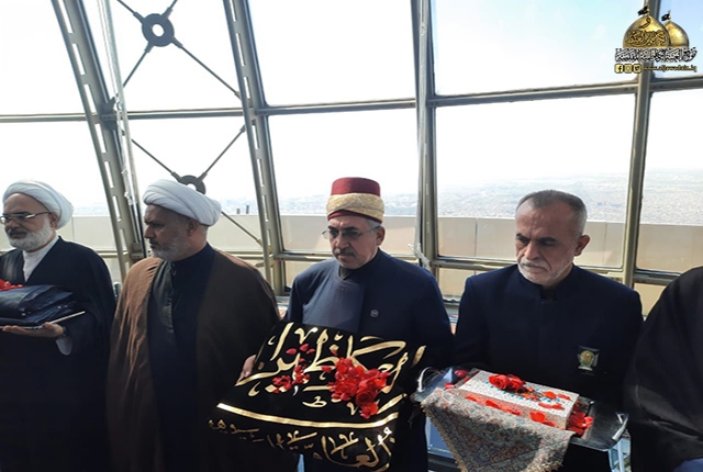بتوجيه من قبل الأمين العام للعتبة الكاظمية المقدسة، خادم الإمامين الكاظمين الجوادين الدكتور حيدر حسن الشمّري، شارك وفد العتبة المقدسة في مراسم رفع رايات العتبات المقدسة العلوية والحسينية والكاظمية والرضوية والعسكرية والعباسية على برج ميلاد في طهران عاصمة الجمهورية الإسلامية الإيرانية، وهي تعيش أجواء محرم الحرام، ذكرى شهادة سيد شباب أهل الجنة الإمام الحسين وأهله الميامين وصحبه الأكرمين "عليهم السلام"، واستذكار مواقف التضحية والفداء في الطف الخالدة التي قدّمت أروع نماذج الطاعة لإعلاء كلمة لا إله إلا الله محمد رسول الله علي ولي الله، والإعلان عن تجديد العهد وصدق مشاعر الإيمان والولاء لسيد الشهداء "عليه السلام"، بحضور وفود العتبات المقدسة والمزارات الشريفة وكوكبة من الشخصيات الدينية والاجتماعية.