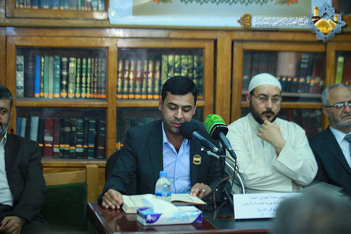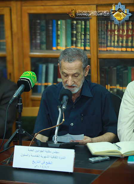 وشهدت مشاركة للدكتور " قصي الحسيني" بعنوان (المقدس وحقوق الإنسان) الذي أكد فيه على أهمية المراقد المقدسة والرموز الدينية وكل شيء ذات سمة ثقافية وفكرية لكل طائفة من طوائف العالم، فخرج بعدد من التوصيات أكد فيها على وجوب عقد المؤتمرات والندوات لأجل صد سياسة الإقصاء التي تستخدم ضد المقدسات وما يتعرض إليه طوائفها من قتل وتهجير لا يشمل الإسلام فحسب بل كل الأديان والمعتقدات، والعمل تحت مظلة التعايش السلمي بين كل الطوائف والأديان وبالخصوص في مجتمعنا العراقي، وضرورة إشاعة ثقافة احترام الآخر، لأنها من أولويات الدين الإسلامي الحنيف مستشهداً بحديث رسول الله "صلى الله عليه وآله" (من آذى ذمياً فأنا خصمه، ومن كنت خصمه خصمتهُ يوم القيامة)، وكذلك قول أمير المؤمنين علي "عليه السلام" ( الناس صنفان: اما أخ لك في الدين أو نظير لك في الخلق)، وعقب الشيخ "عماد الكاظمي" عما قدمه د. الحسيني بأن الشيء المقدس عند الأمم هو باب حقوق الإنسان وكيفية احترام الآخرين مؤكداً أن الأفكار الضالة لا تحترم الآخر، كما أضاف إلى التوصيات الواردة فقرةً خاطب فيها وزارة التربية حول المناهج المعدة في التاريخ الإسلامي والمعاصر، فعليها أن تهتم بتاريخ العراق المعاصر وتسلط الضوء على أهم الأحداث لأجل أن تتعرف الأجيال لما حدث في العراق في العصر الحديث.