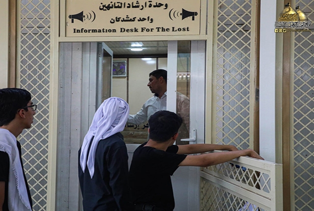 من أجل توفير الخدمات المختلفة لزائري الإمامين الكاظمين "عليهما السلام" في الزيارة المليونية لموسم الأربعين، حرصت وحدة إرشاد التائهين التابعة لقسم خدمة الزائرين على تقديم جهود استثنائية في مراكزها الموزعة في صحون العتبة الكاظمية المقدسة من خلال استخدام نظام تنسيق النداءات الإلكترونية لتسهيل مهمة الاستدلال على الاشخاص المفقودين ومعالجة مشاكل التائهين الوافدين من الدول العربية والإسلامية والأجنبية والاتصال بذوي المفقود بأقصى سرعة ممكنة من خلال إعداد خطة متكاملة وتهيئة فريق من المترجمين باللغات الفارسية والأوردو والانكليزية، فضلاً عن التعاون المشترك مع مراكز إرشاد التائهين في مدن العتبات المقدسة وطق مسير الزائرين وكذلك التنسيق المشترك مع عدد الجهات الخدمية في مدينة الكاظمية المقدسة لتأمين الاتصال بمسؤولي القوافل والحملات والمتعهّدين كما شهد هذا الموسم الأربعيني توفير خدمة الاتصال الخارجي والداخلي "المجاني" للزائرين.