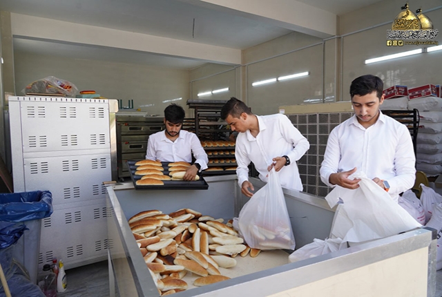 سخّرت أفران العتبة الكاظمية المقدسة التابعة لقسم خدمة الزائرين خطوطها الإنتاجية كافة منذ البدء بالخطة الخدمية الخاصة بموسم الأربعين، لدعم وجبات الطعام بمادة الصمون التي توزّع إلى الزائرين في مضيف الجوادين، ودور الضيافة وأماكن إيواء الزائرين ومبيتهم التابعة للعتبة الكاظمية المقدسة، والمواكب الحسينية في مدينة الكاظمية، والسعي في زيادة كميات الإنتاج لتغطية ما تحتاجه جموع الزائرين الكرام.