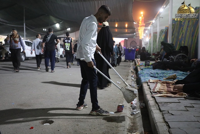 في الوقت ذاته تُهيب الأمانة العامة للعتبة الكاظمية المقدسة بالزائرين الكرام والمواكب الخدمية بالتعاون معها للحفاظ على النظافة العامة، وضرورة الالتزام بعدم رمي النفايات وبقايا الطعام والقناني الفارغة بشكل عشوائي، احتراماً لقدسية مدينة الإمامين الكاظمين الجوادين "عليهما السلام"، فالاهتمام بالنظافة هو جزءٌ مهم يعكس الالتزام العالي بتعاليم الاسلام ومؤشر كبير على نجاح الزيارة المليونية المباركة.