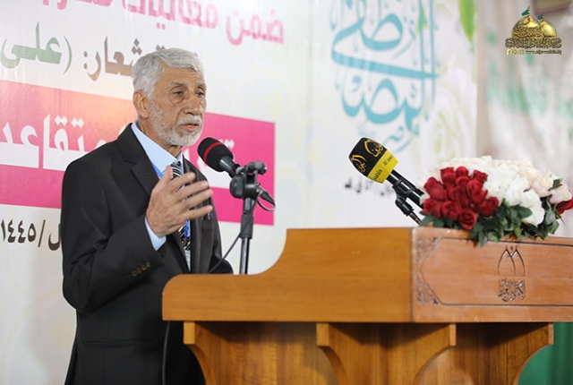 بعدها ألقى مدير عام تربية بغداد الكرخ الثالثة الأستاذ سعد صابر الربيعي كلمة بهذه المناسبة بيّن خلالها قائلاً: ما أجمل اللقاء في هذه الرحاب الطاهرة، وهذه أيام رسول الله "صلى الله عليه وآله وسلم"، وحفيده الإمام الصادق "عليه السلام" مع هذه الشخصيات الطيبة التي أينعت ثمارها، إذ أعطت من جهود أغنت بها الأجيال، فتَحيةَ إجلال لكم ولأصحاب هذه الدعوة الكريمة، وبهذه المناسبة نتقدّم بالشكر والتقدير للأمانة العامة للعتبة الكاظمية المقدسة وأمينها العام الدكتور حيدر الشمّري على هذه المبادرة الكريمة وهي ليست بجديدة في دعمها واهتمامها بالنشاطات الإنسانية والتواصل مع المؤسسات التربوية والعلمية والفكرية والثقافية.