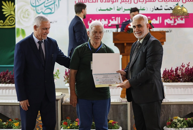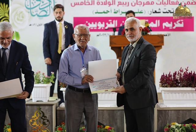 ابتهاجاً بذكرى ولادة سيد الكائنات نبينا محمد "صلّى الله عليه وآله وسلّم" وحفيده إمامنا السادس جعفر الصادق "عليه السلام"، وضمن فعاليات مهرجان ربيع الولادة الخامس المُقام تحت شعار: (على صراط أحمد)، وبرعاية مباركة من قبل الأمين العام للعتبة الكاظمية المقدسة خادم الإمامين الكاظمين الجوادين الدكتور حيدر حسن الشمّري، أقامت الأمانة العامة للعتبة الكاظمية المقدسة حفل تكريم نخبة من الأساتذة التربويين المتقاعدين في مديريات تربية بغداد الكرخ والرصافة وذلك تقديراً لجهود تلك القامات الإنسانية وعرفاناً لمسيرتهم العلمية والمهنية لما قدموه من الجهد والعطاء طيلة سنوات عملهم، بحضور عدد من المديرين العمومين، وكوكبة من الملاكات التربوية والتعليمية والإدارية.