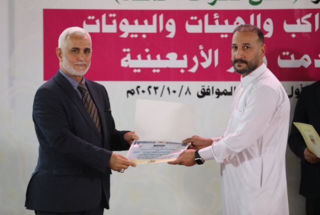 الأمانة العامة للعتبة الكاظمية المقدسة تكرّم المواكب والهيئات الحُسينية لدورها الكبير في زيارة الأربعين