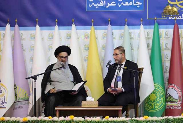 وأضاف: نحن أمّة اقرأ وورثة تراث اقرأ علينا أن نعمل بجد واجتهاد من أجل أن نكون ورثة حقيقيين لأثار اقرأ وما تتضمنه من آمال كبيرة في بناء الفرد والمجتمع وتربيتها على أسس راسخة وما هذه الساعات المباركة بين هذا الجمع المبارك إنما لأجل تجسيد تلك المبادئ العظيمة، وأن هذه المؤتمرات العلمية التي يشهدها العراق في الجامعات والعتبات المقدسة والمؤسسات إنما هي تعبير واضح وصادق على أهمية هذا المنهج في التلاقح المعرفي بين الباحثين من الجهات المختلفة من أجل خدمة العلم والمجتمع من جهة وفق المنهج البحث العلمي الرصين القائم على قواعد رصينة من جهة أخرى، وأن هذه المؤتمرات المتواصلة التي تقام في جميع العتبات المقدسة هي بارقة أمل كبير من القائمين عليها في خدمة المجتمع وفق معارف الثقل).