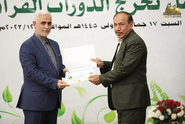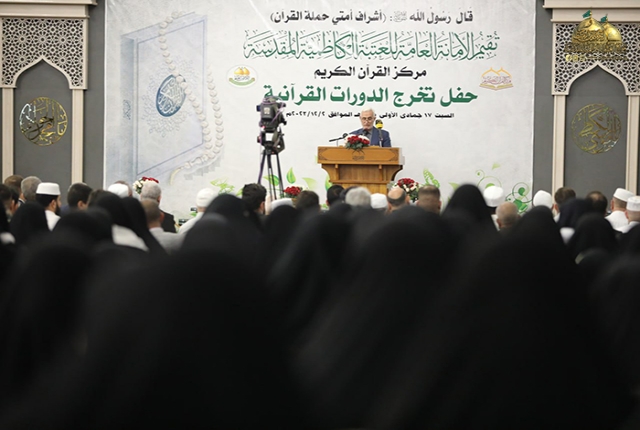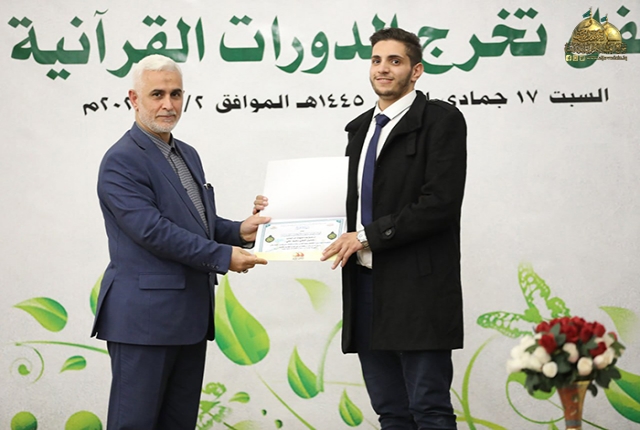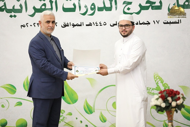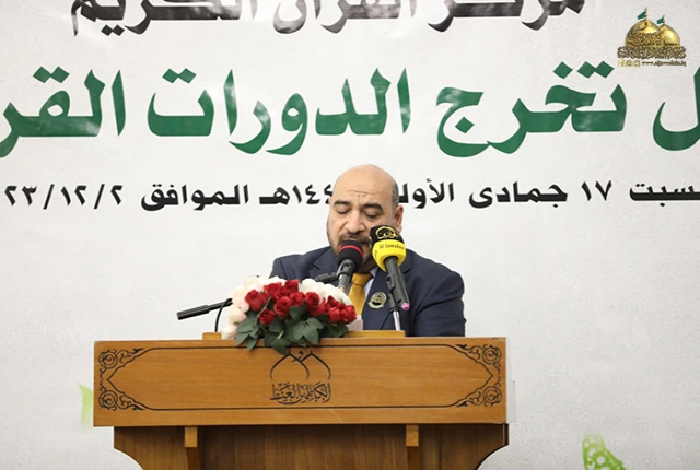وأضاف: أن الدورات القرآنية فرصة قيمة وعظيمة لنا جميعا ولا يجب أن نفرط بها إذا ما عرفنا أن القرآن الكريم هو أول الثقلين ومن ثم الثقل الثاني عترة النبي المصطفى "صلى الله عليه وآله وسلم" ولا بد من التمسك بهما لضمان الهداية وعدم الضلال لهذا ينبغي علينا تعلم القرآن الكريم وفهم آياته والتقرب إلى الله عز وجل بالمداومة على تلاوة كتابه وتطبيق آياته وتعاليمه في حياتنا.. لذلك أوصانا الإمام جعفر الصّادق "عليه السلام" قائلا: (يَنْبغي للمؤمن أنْ لا يموت حتّى يَتعَلّم القرآنَ، أو يكونَ في تعلّمه)).