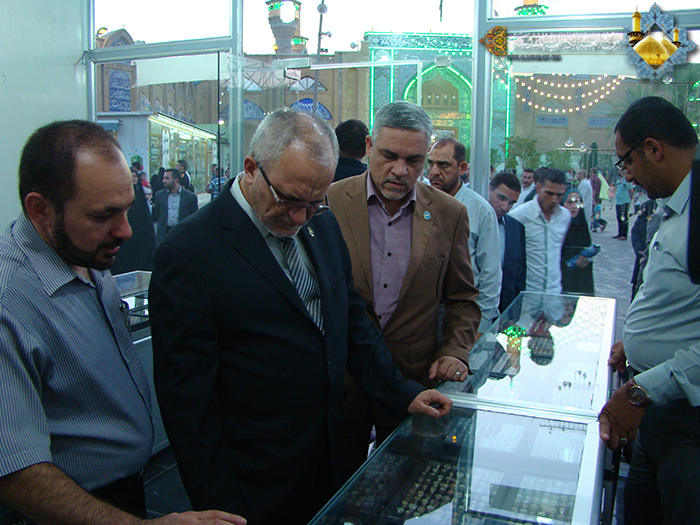 افتتح الأمين العام للعتبة الكاظمية المقدسة أ . د "جمال الدباغ" معرض النقش والزخرفة الذي يقع عند مدخل باب المراد مساء السبت 6/9/2014م والذي يتزامن مع الذكرى العطرة لولادة شمس الشموس الإمام علي بن موسى الرضا "عليه السلام" بحضور أعضاء مجلس الإدارة وعدد من مسؤولي الأقسام وخَدَمَة الإمامين الجوادين"عليهما السلام" .