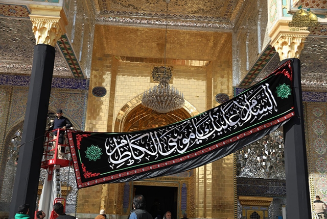 حري بالدنيا أن تتشح بالسواد لذكرى استشهاد أسد بغداد الإمام موسى بن جعفر الكاظم "عليهم السلام"، نعم هكذا شاء أن نستقبل هذه المناسبة الأليمة ونحن نستذكر فاجعة تدمي قلوب محبي وأتباع أهل البيت "عليهم السلام" في مشارق الأرض ومغاربها، إذ اتَّشحت العتبة الكاظمية المقدسة بمظاهر الحزن والأسى ونشر السواد والكلمات النورانية على أعمدة الطارمات والأواوين في الصحن الكاظمي الشريف.
