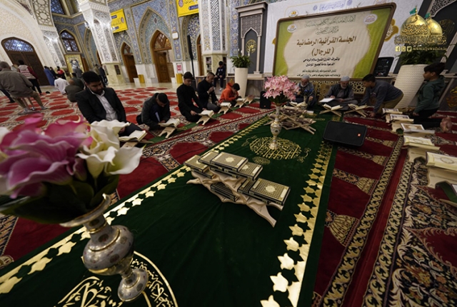 منذ حلول شهر الخير علينا حتى امتلأت أيامه المباركة بالأجواء الإيمانية والروحانية تتوجها تلاوة آيات الذكر البيّنات لتعيد الربيع لحياتنا وتجلي صدأ قلوبنا التي أظلمتها الذنوب وأثقلتها الهموم، لذا أقامت الأمانة العامة للعتبة الكاظمية المقدسة/ مركز القرآن الكريم الجلسات القرآنية التعليمية للرجال واليافعين، وتشهد تلك الجلسات القرآنية التي تُقام يومياً بعد صلاتي العشاءين بإشراف القارئ الشيخ سلام الرماحي، قراءة جزء كامل من المُصحف الشريف في كلّ ليلةٍ من ليالي الشهر الكريم، والاستماع للقرّاء المشاركين وتقديم كلّ ما يهمّهم من ملاحظات تخصّصية قيّمة تساعدهم في تطوير أدائهم الإقرائي وصولاً إلى التلاوة المُتقنة.