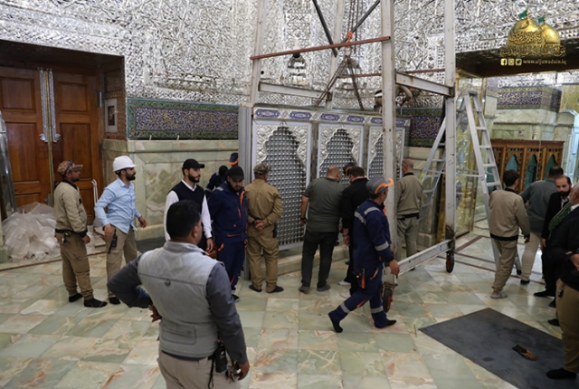 نصب وتركيب القواطع الجديدة للحرم الكاظمي الشريف