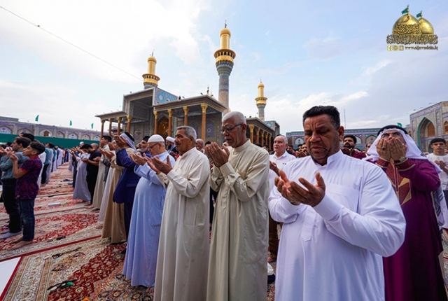 ثم ابتهل المصلون إلى الله العليّ القدير بالدعاء بتعجيل فرج القائم من آل محمد "عجل الله فرجه الشريف" وأن يجعل عيدنا تحقيقاً للغايات المنشودة، وأن يعم الأمن والأمان على العراق بلد الأنبياء والأوصياء وأن يبعد عنه ويجنبه كلّ مكروه ويجعل دائرة السوء تدور على كل من يريد به غير الخير.