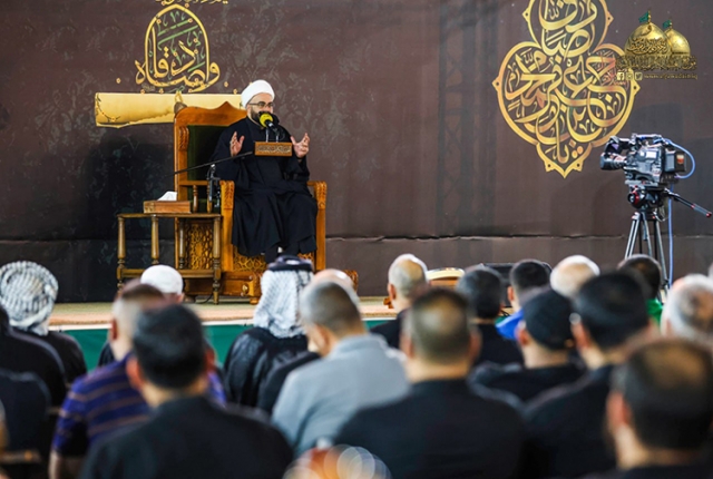 كما تطرق فضيلته إلى منهجه ووقوفه بحزم ضد الهجمات التي شنتها الزمر الضالة المعادية لمنهج أهل البيت "عليهم السلام" وتمكنه "عليه السلام" في تمتين وتقوية الأصول والجذور الفكرية والعلمية، وإسهام مدرسته في تربية العلماء وجماهير الاُمّة على نشر الوعي العقائدي والسياسي، والتفقّه في أحكام الشريعة ومفاهيمها، منصرفاً عن الصراع السياسي المكشوف إلى بناء المقاومة بناءً علميّاً وفكريّاً وسلوكيّاً.