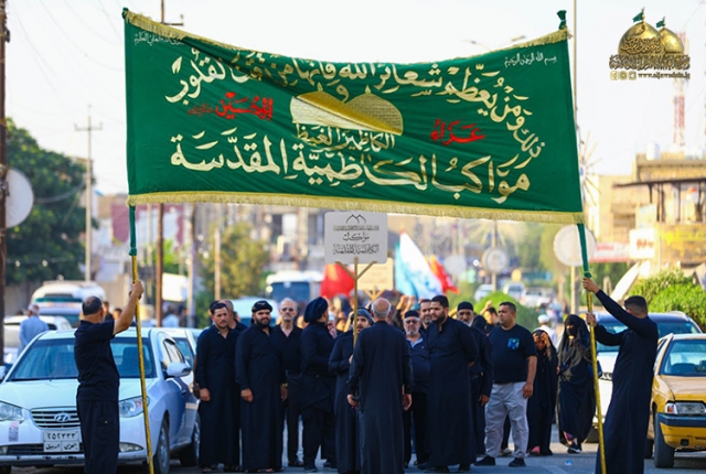خدام العتبة الكاظمية المقدسة يشاركون في تنظيم مسيرة عزائية بمدينة الكوفة العلوية