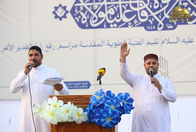 وشهد الحفل مراسم رفع راية الغدير وسط أجواء ولائية مباركة، كما تخلل الحفل إلقاء عدّة كلمات، وكان من بينها كلمة فضيلة الشيخ عماد الكاظمي بيّن خلالها أهمية يوم الغدير الأغر وعظمته وما جرى فيه وما صدر من نبي الإسلام محمد "صلى الله عليه وآله وسلم" في حقّ الإمام علي وأهل بيته "عليهم السلام" الأمر الذي لا يختلف عليه المُسلمَين، وهو مما يعترف به المخالف والمؤالف.