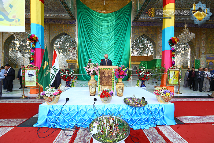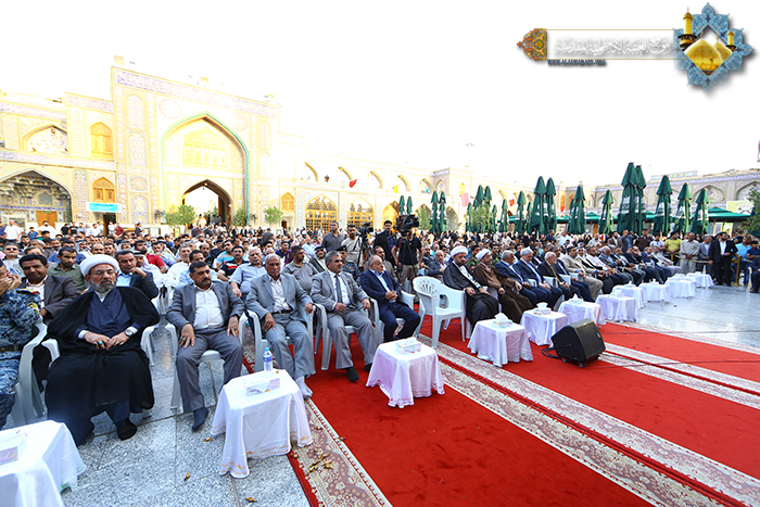 تجددت أفراح محبي أهل بيت النبوة "عليهم السلام" في يوم العهد المعهود، والميثاق المأخوذ والجمع المشهود، يوم إكمال الدين وإتمام النعمة والتنصيب الإلهي يوم الغدير الأغر, حيث توشحت رحاب الإمامين الجوادين "عليهما السلام" برايات الفرح والبهجة والسرور بهذه الذكرى العطرة, إذ أقامت الأمانة العامة للعتبة الكاظمية المقدسة حفلها البهيج بهذه المناسبة العطرة. وقد حضر الاحتفال رئيس الوزراء الدكتور حيدر العبادي وعدد من الوزراء وأعضاء مجلس النواب ووجهاء وشيوخ وأعيان مدينة الكاظمية المقدسة وممثلو الدوائر الحكومية في المدينة المقدسة وجمع غفير من زائري الإمامين الجوادين "عليهما السلام". واستهل الحفل بتلاوة آيات من الذكر الحكيم شنّف بها قارئ العتبة الحاج "همام عدنان " أسماع الحاضرين، تلتها كلمة الأمانة العامة للعتبة الكاظمية المقدسة وألقاها أمينها العام أ.د "جمال الدباغ" قائلاً: "إن أحتفالنا بمناسبة عيد الغدير الأغر هو احتفاء بولاية القيم والمثل العليا واحتفاء بتحقيق العدالة الانسانية وتطبيق أحكام الله وعلى الجميع أن يجعلوا من عيد بيعة الغدير منطلقاً لبناء الذات والمجتمع والسير على النهج القويم والالتزام بتعاليم الرسالة الاسلامية السمحة , ولا يمكن أن نجعلها تمر مروراً عابراً ليس لها تأثير على نفوسنا وسرائرنا , كما اننا نؤكد على الصمود في طريق الحب والولاء لآل بيت النبوة الأطهار "عليهم السلام " .