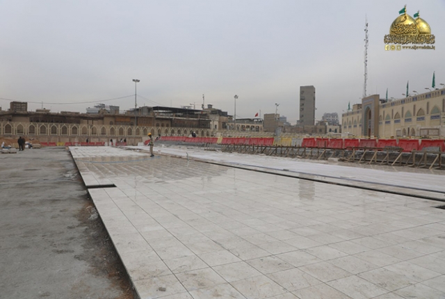في إطار الجهود والمساعي المباركة لتطوير العتبة الكاظمية المقدسة، شرعت الملاكات الهندسية والفنية في العتبة المقدسة وبإشراف ومتابعة حثيثة من قبل الأمين العام للعتبة الكاظمية المقدسة، خادم الإمامين الكاظمين الجوادين الدكتور حيدر حسن الشمّري، بمرحلة تطوير وإكساء أرضية صحن الإمامين الحسنين "عليهما السلام" بالمرمر وبمساحة تقدر (9830م2) وفق التصاميم المعمارية المُعدّة للمشروع، في الوقت الذي يبذل فيه العاملون المزيد من الجهود لإنجاز تلك الأعمال وفق الجداول الزمنية والمواصفات التنفيذية.